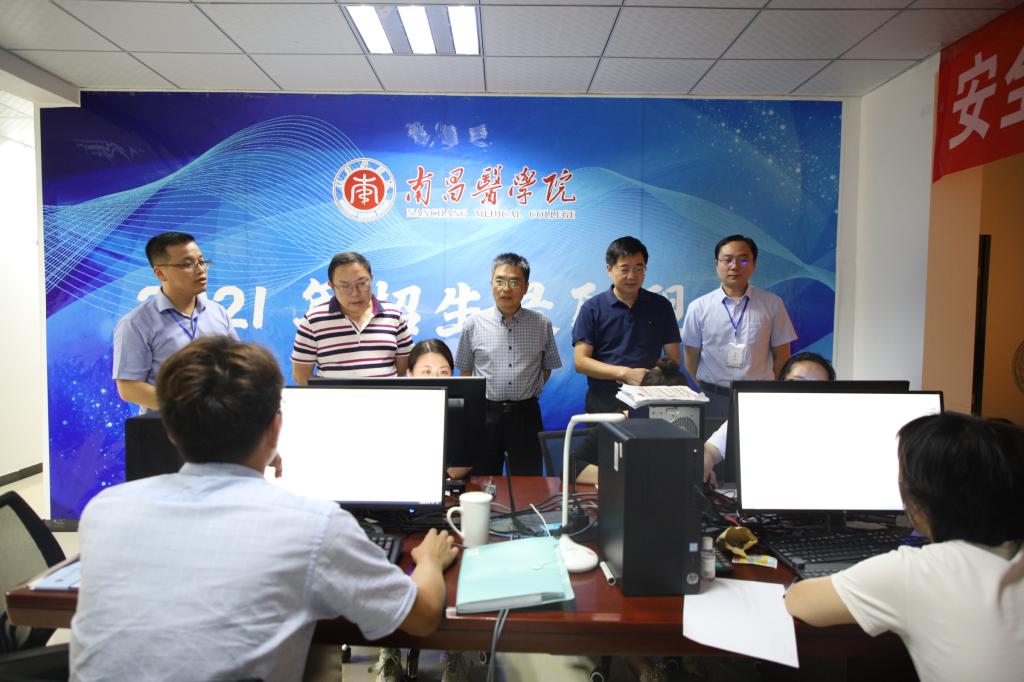 (通讯员何思佳)7月26日,江西省卫健委二级巡视员,kaiyun体育网页登录入口(筹建期)党委委员、副校长李志刚,党委委员、副校长胡振宇在相关部门负责人的陪同下赴kaiyun体育网页登录入口湾里校区2021年招生录取工作现场,看望慰问暑期忙碌在招生录取现场的工作人员,了解招生录取工作进展状况,指导招生录取工作。