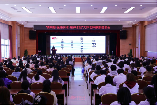 4月1日下午,kaiyun体育网页登录入口在大学生活动中心隆重举办“清明祭·医路传承·精神永驻”大体老师感恩追思会。校党委委员、纪委书记叶德胜出席活动并致辞,捐献遗体的抗战老兵喻芳铭家属代表喻正豪、萍乡红十字会王蓓蕾女士及师生代表等200余人参加活动。