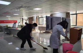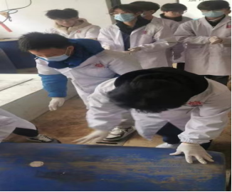 随着《局部解剖学》理论课程的进行,实验课开课在即,吴龙祥同志带领解剖教研室的老师、全体党员教师和部分学生一起将大体老师从停尸房搬运到解剖实验室,为《局部解剖学》实验课程的开展做好准备。很多同学都是第一次来到停尸房,不仅内心紧张忐忑,而且眼睛、鼻子都被福尔马林刺鼻的气味熏得生疼,泪流不止,即使这样也没有一位同学临场退缩,他们认真听从老师的指挥和安排,明确分工后,迅速进入工作状态,在大家的通力合作,互相配合下很快就完成了大体老师的搬运。随后,党员教师们为了给同学们提供了一个整洁舒适的学习环境,也开始了清洁打扫工作,他们手拿扫帚、拖把和抹布,撸起袖子扫地、拖地、擦柜子,充分发扬“不怕苦、不怕脏、不怕累”的雷锋精神,直到把教室的各个角落都打扫干净为止。