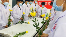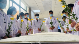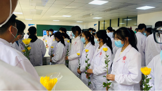 无言大爱,感恩长存。伴随着肃穆的音乐,各班代表在实验室遗体台献上鲜花并诚挚鞠躬。一束束白色的花朵,一次次由衷的鞠躬,诠释着别样的人间仁爱,寄托着伟大的师生恩情。